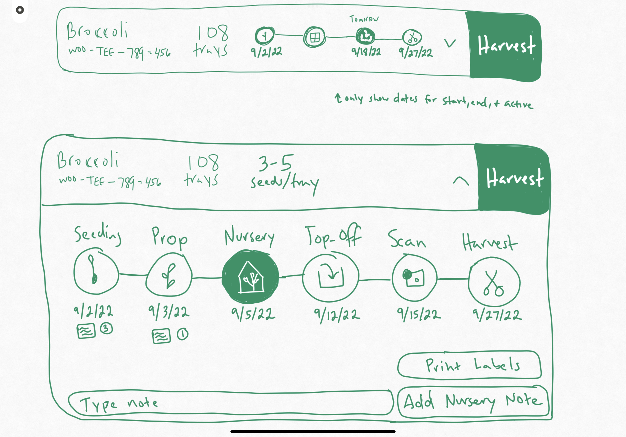 We realized that to effectively trace a crop from seed to harvest, we needed a more robust solution. This meant being able to link crops to their respective modules and document all actions performed on them, such as top-offs. By adding these features, we could unlock numerous use cases and ensure seamless tracking and management of our crops.