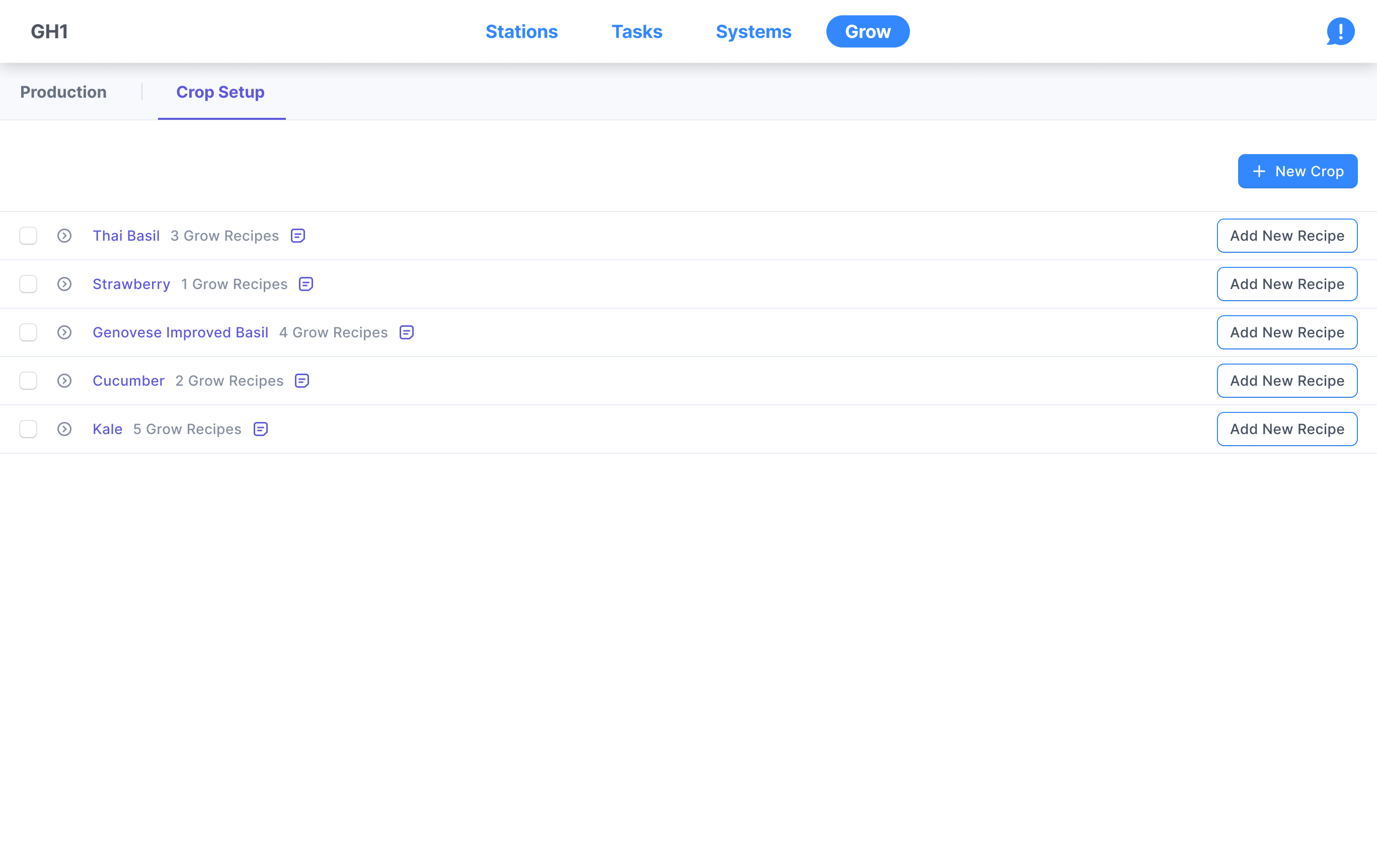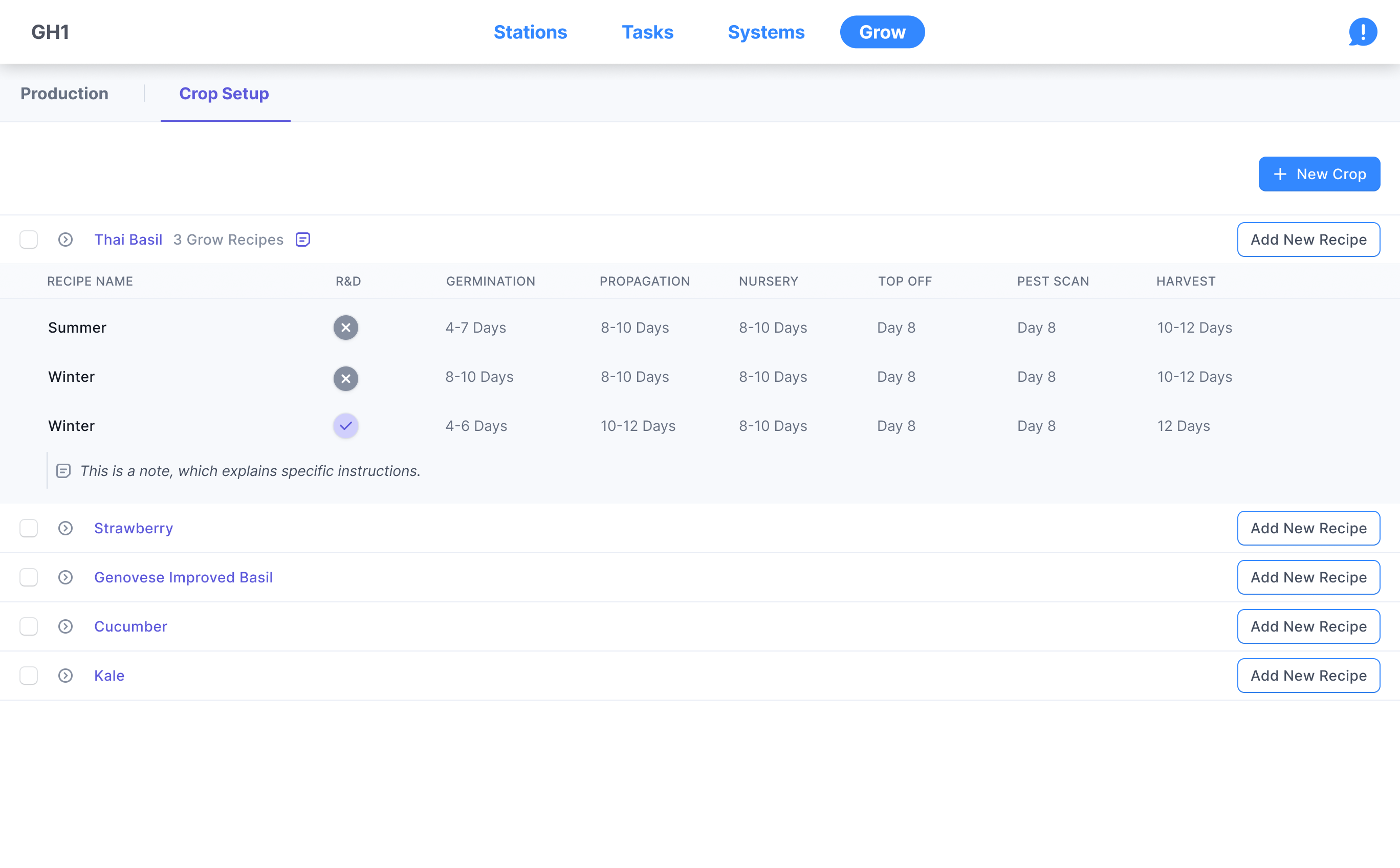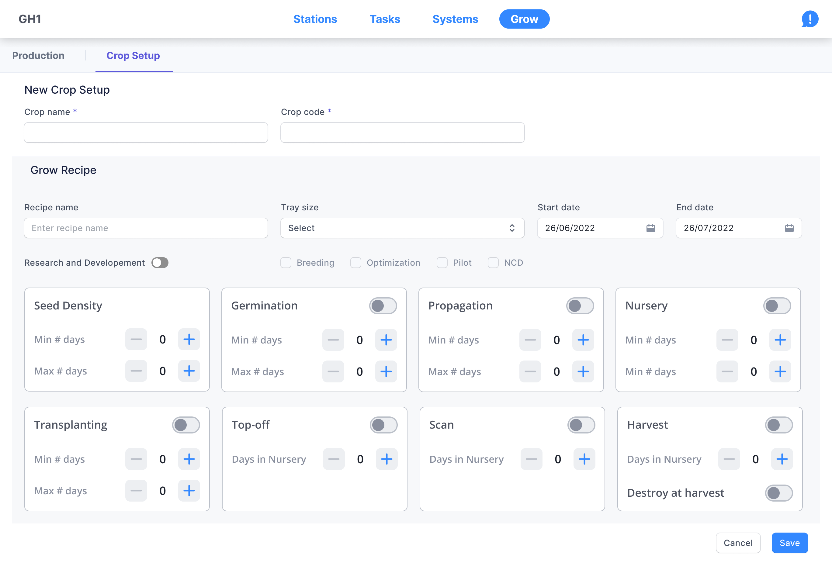 Design an administrative interface for managing high-level crop metadata (stages, timings, names, etc.), tailored to each specific greenhouse.