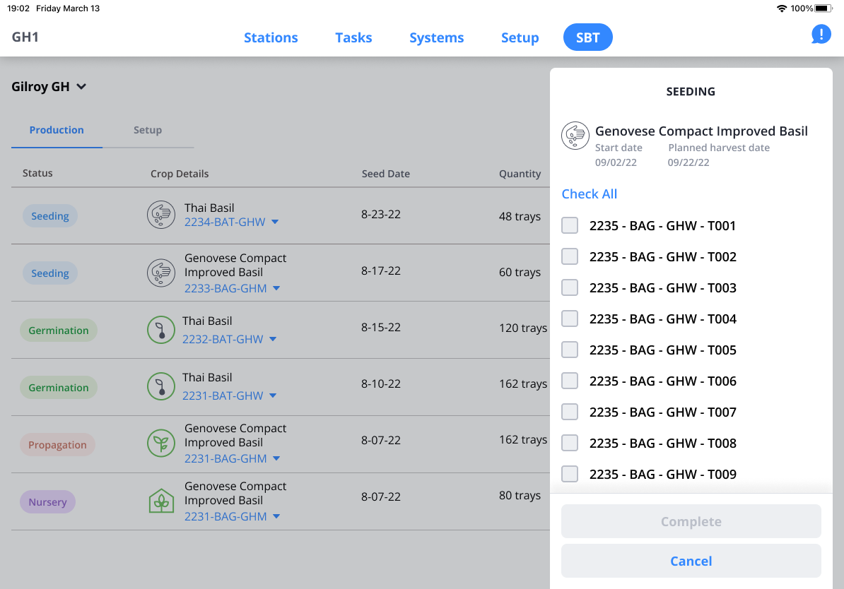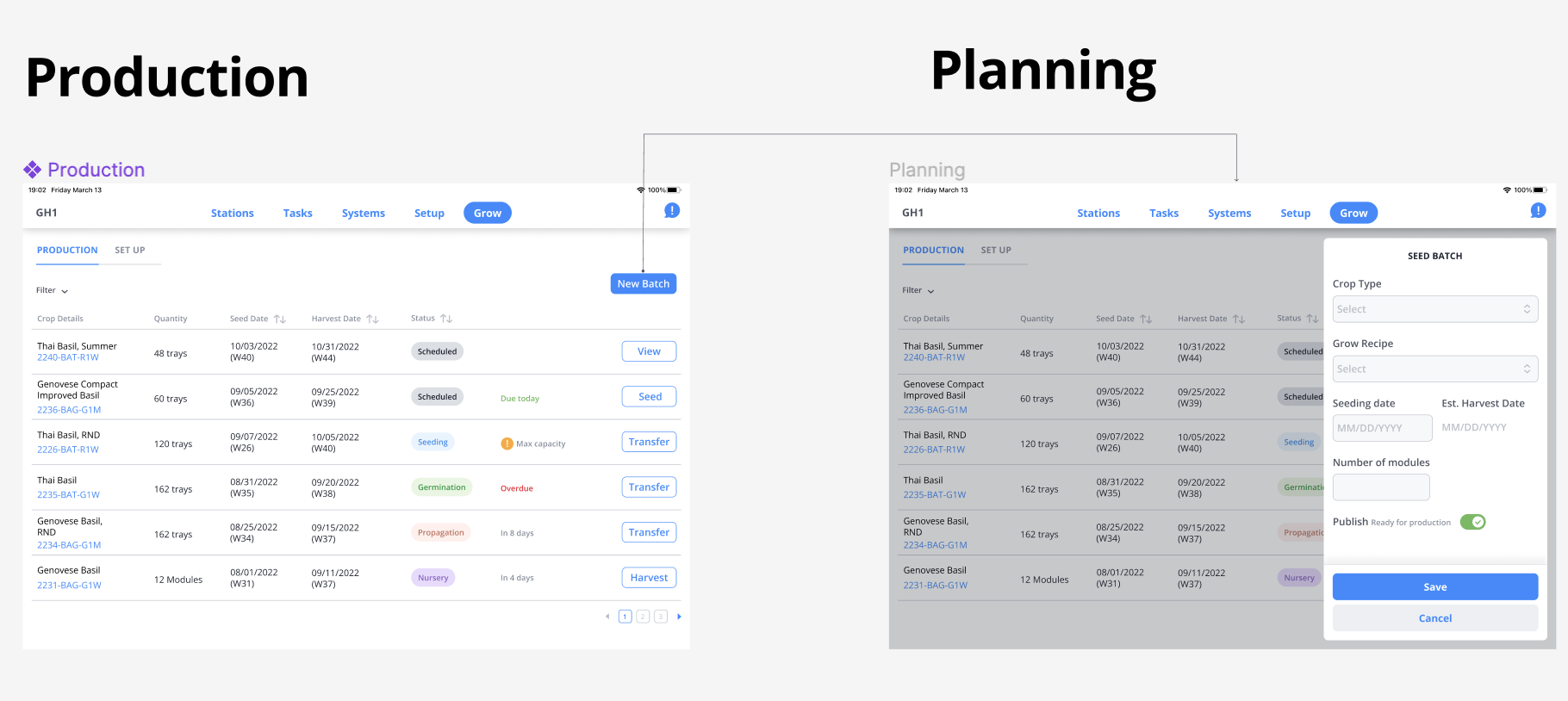 At Iron Ox, a seed batch signifies a specific type of crop that is seeded on a given day. Initially, we tracked this information using a combination of Google Forms, Google Sheets, and OTS software. However, this approach conflicted with our company’s goals for data integrity and architecture, and it lacked the scalability needed to support our growing business and technological platform.