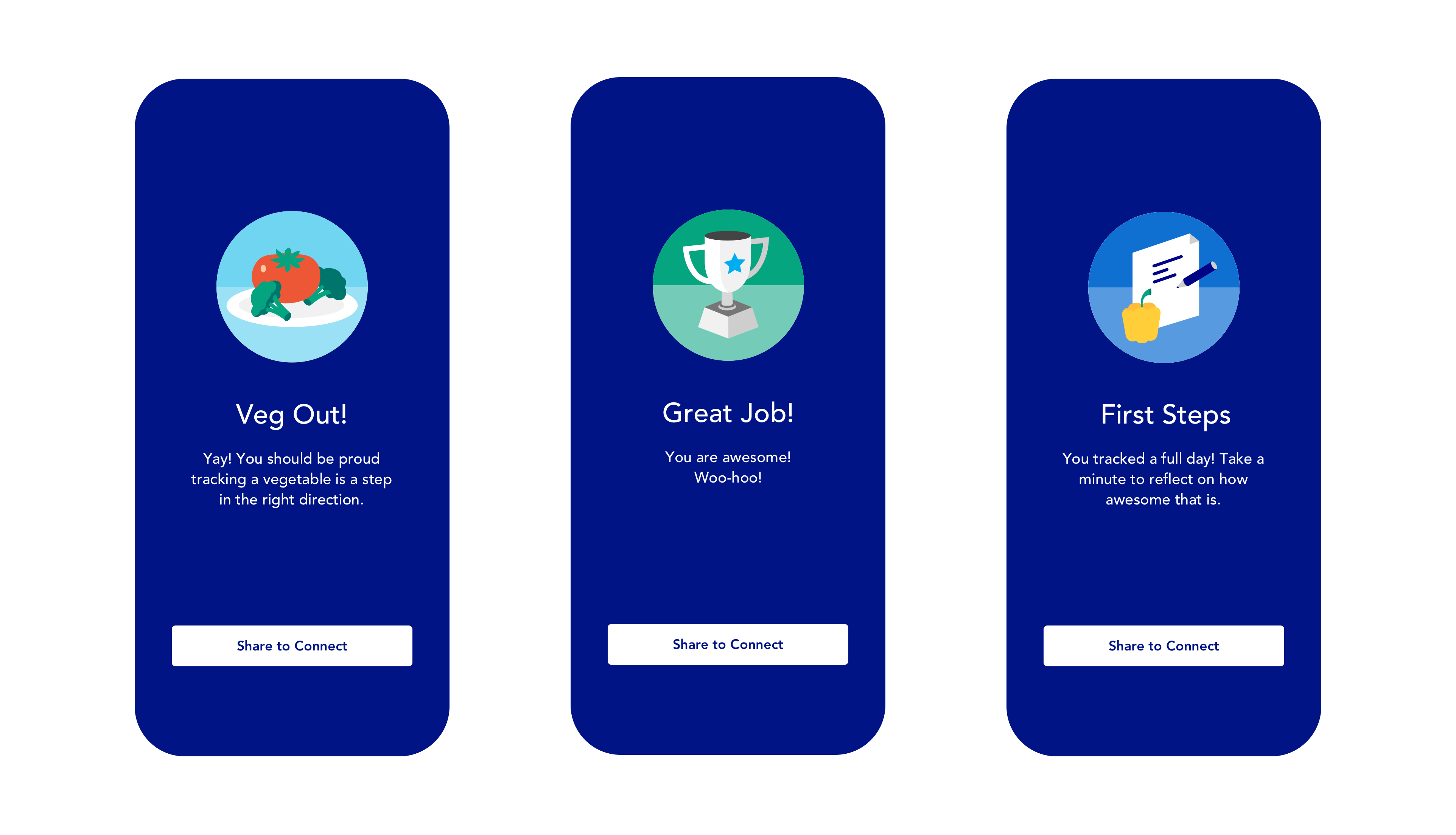 These illustrations were used in important moments of member's journey to congratulate them for achieving a specific measurable, and attainable goal.