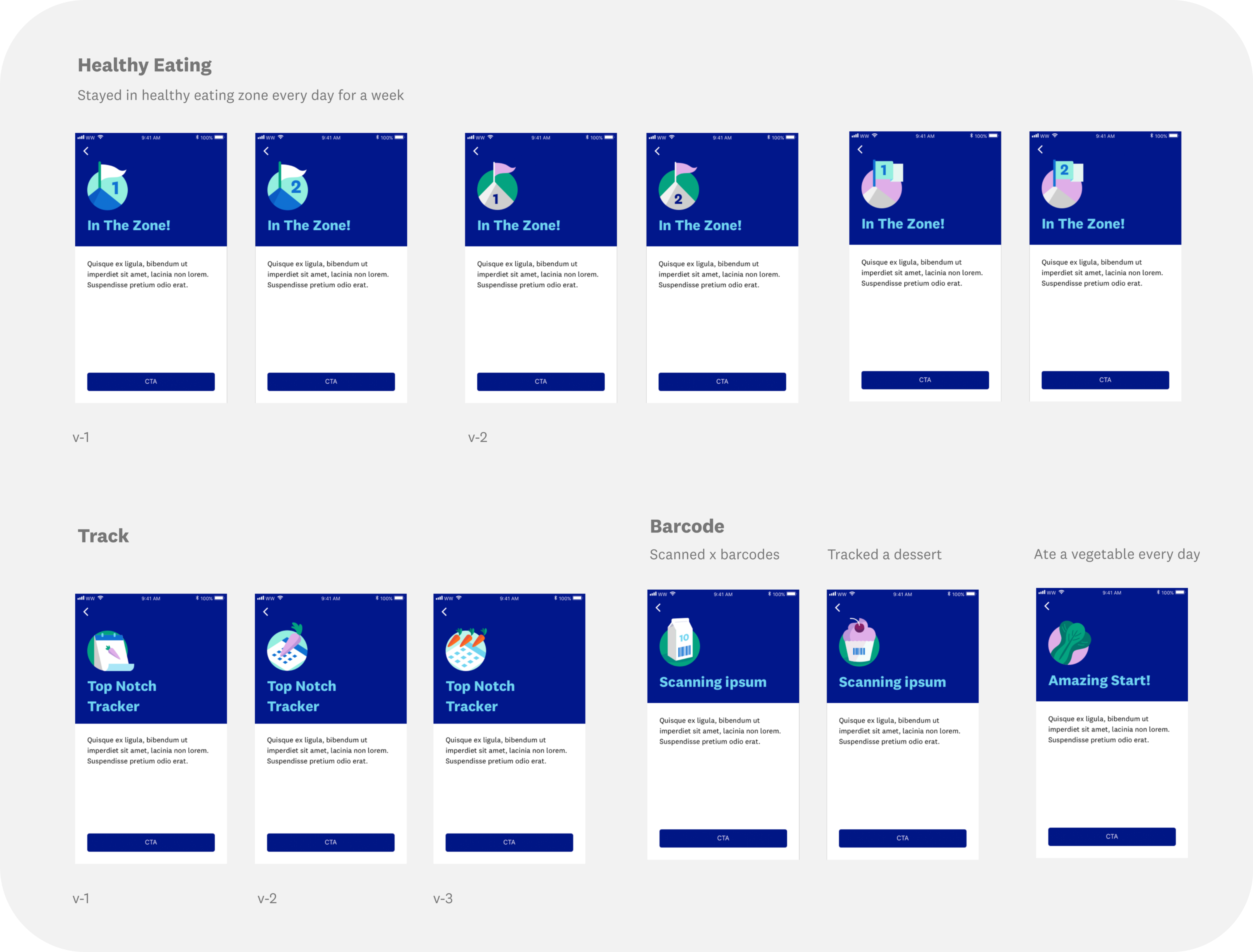 As part of Weight Watchers rebrand to WW, I helped design more than 100 milestone badges to recognize a variety of user achievements. From steps taken to tracking healthy eating habits, these virtual awards were designed to recognize and help users celebrate even the smallest of victories along their health journey.