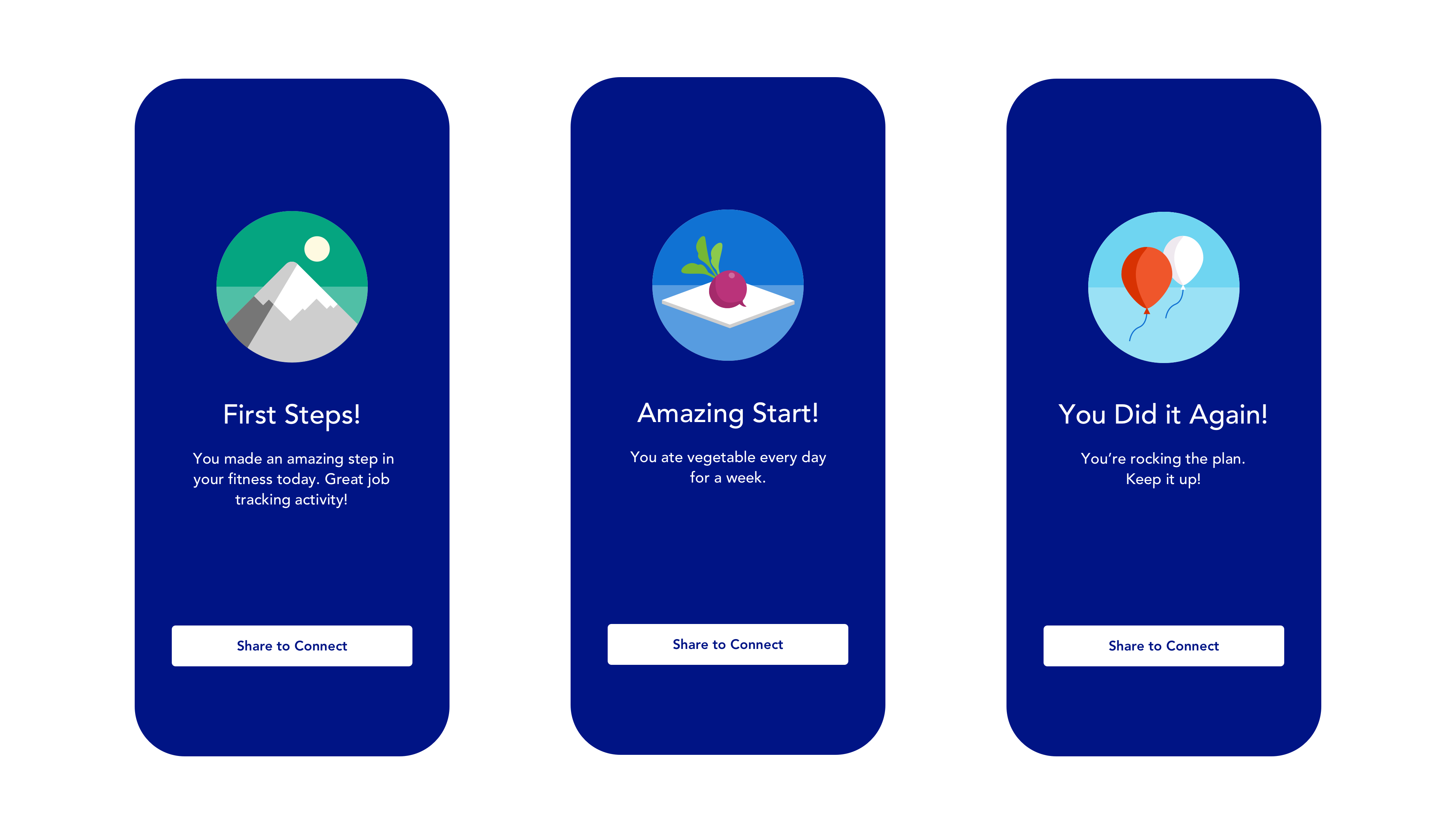 These illustrations were used in important moments of member's journey to congratulate them for achieving a specific measurable, and attainable goal.